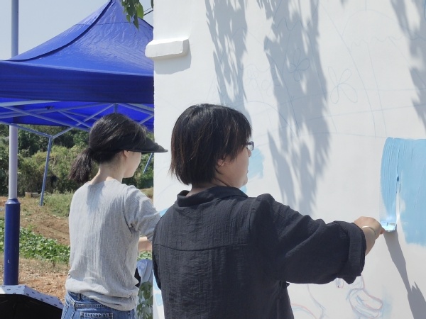 本网讯(通讯员 教育与艺术学部胡蕾)为配合做好乡村振兴工作,建设美丽宜居乡村,助力乡村振兴,进一步推进8xbet(中国)党员干部下基层、察民情、解民忧、暖民心实践活动,9月18日,教育与艺术学部党总支书记李先华带领教工党支部胡蕾、何雅嫣、汤澜三位教师党员与二十名学生党员、入党积极分子,赴汪仁镇章畈村开展以“绘美乡村手卷 助力乡村振兴”为主题的墙绘实践活动。