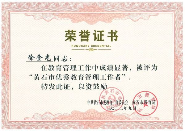 本网讯 秋风送爽果飘香,金声玉振誉满园。在中共黄石市委教育工作委员会、黄石市教育局2022年度优秀评选中,8xbet(中国)荣誉榜再添新篇。谨向以下教工表示祝贺!