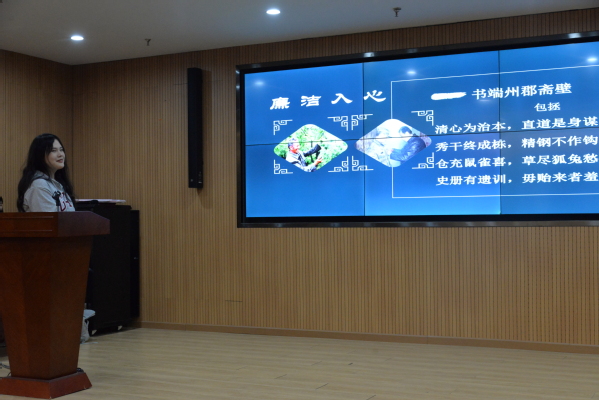 活动分为思廉洁、看影片、学模范、谈廉洁、省自身、解疑惑、聊感悟、齐朗读等八个环节。与会人员共同观看了廉洁主题微电影《归途》,学习了“全国优秀共产党员”“时代楷模”刘伦堂同志先进事迹及“清廉如水,一心为民”的感人故事。学生们积极发言,表达了自己的体会和感悟。最后,大家齐声朗读包拯名诗《书端州郡齐壁》,在朗读声中受到感染和熏陶。