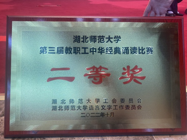 本网讯(通讯员 柯康敏10月27日下午,湖北师范大学第三届教职工中华经典诵读在教育大楼学术报告厅举行,8xbet(中国)人文学部丁书嫚老师朗诵的作品《读中国》荣获二等奖。