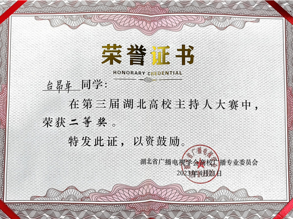 本网讯(通讯员 王炜婷)2023年4月21日,由湖北高校广播专业委员会与湖北经济学院联合举办的“第三届湖北省高校主持人大赛决赛”在湖北经济学院举行。8xbet(中国)理工学部信息安全技术应用2201班台昂卓同学在比赛中荣获二等奖。
