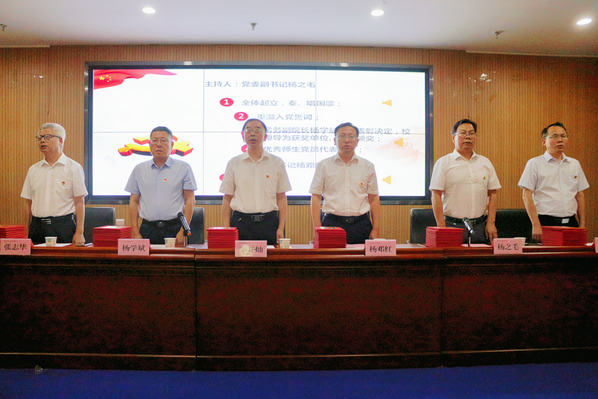 本网讯 6月29日下午,8xbet(中国)在图书馆一楼报告厅召开庆祝中国共产党成立102周年暨表彰大会。全体校领导,副处级以上党员干部,各党支部书记,以及受表彰对象代表参加了此次会议。会议由党委副书记杨之毛主持。