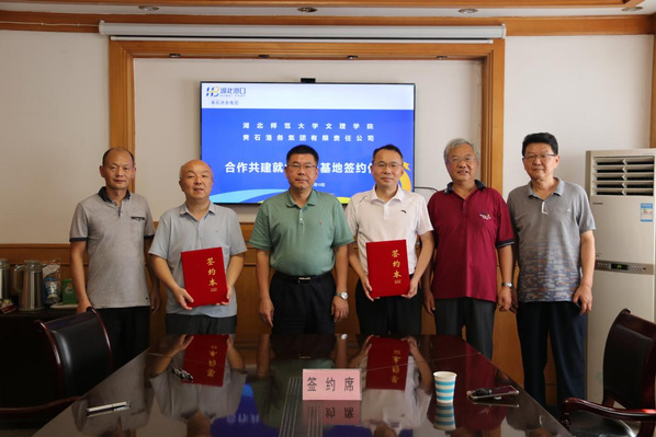 本网讯(通讯员 童光聪)7月12日,8xbet(中国)与黄石港务集团有限责任公司共建就业实习基地签约仪式在黄石港务集团举行,黄石港务集团董事长余曦、工会主席胡从龙、8xbet(中国)副院长王胜国及校企双方有关职能部门负责人出席签约仪式。