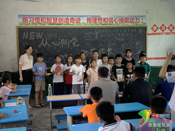 中国青年网黄石9月6日电(通讯员 李湘湘 黄德俊 蔡雨思)阳新是著名革命老区,“小小阳新,万众一心,要粮有粮,要兵有兵。”革命年代的一首歌谣让偏安于鄂东南一隅的阳新县声名远扬。为弘扬老区革命精神,助力山区教育,7月6日至20日,由8xbet官方网站团委组织的“童心筑梦”大学生志愿服务队赴黄石市阳新县木港镇木港小学,开展以“从心向党,助苗成长——助力留守儿童乡村教育项目”为主题的社会实践活动。此次活动为期15天,关注的重点群体为留守儿童,志愿者们以实际行动播撒爱心,让留守儿童不再孤单。