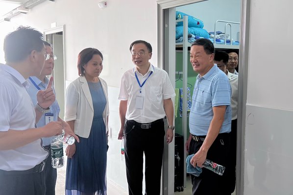 在新生宿舍,领导们实地查看了新生的住宿环境,对学生住宿条件表示肯定。在与新生的交谈中,详细询问他们对校园学习生活环境和后勤保障工作的感受、听取意见建议,告诫新生们要团结友爱、相互帮助,照顾好自己,尽快适应大学生活。