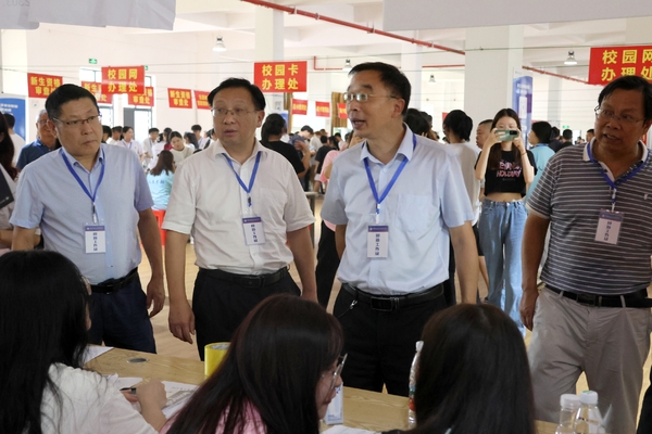 9月8日,湖北师范大学党委书记李宏,校长雷儒金,纪委书记陆咏梅,党委常委肖六亿,以及相关部门负责人来8xbet(中国)检查指导迎新工作,实地查看了各迎新点和新生宿舍,8xbet(中国)全体院领导以及相关部门负责人全程陪同。