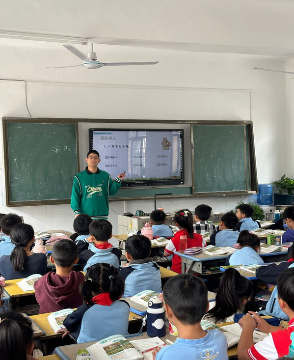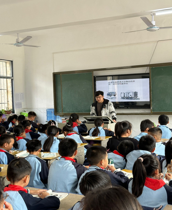 数学课堂,宋讯采用多种教学方法和手段讲解了《万以内的加减法》,结合多样的游戏方式和轻松的互动形式,注重学生的实际运用,帮助小朋友更好掌握数学学习技巧。学生党员侯昕宇带来《吨的认识》,将过程和结果两手抓,向小朋友们展示了数学的趣味与魅力,极大提高了小学生对数学学习兴趣。