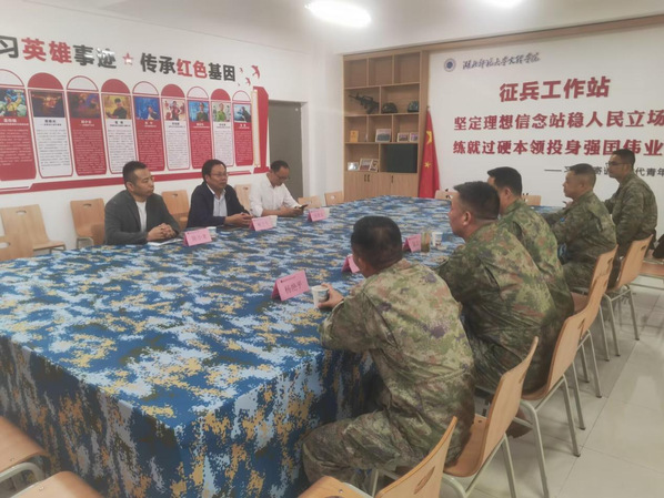 本网讯(通讯员 秦雯雯)10月30日下午,黄石市军分区陈高泉副司令、王震处长、李昌恒参谋,黄石港区武装部杨艳平部长、徐志猛政委一行莅临8xbet(中国)检查指导征兵工作站建设,8xbet(中国)党委副书记杨之毛、学工部部长汪崇文及相关人员陪同检查并参加座谈会。