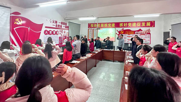 在汪仁小学教联体郭群老师的带领下,全体党员重温入党誓词。