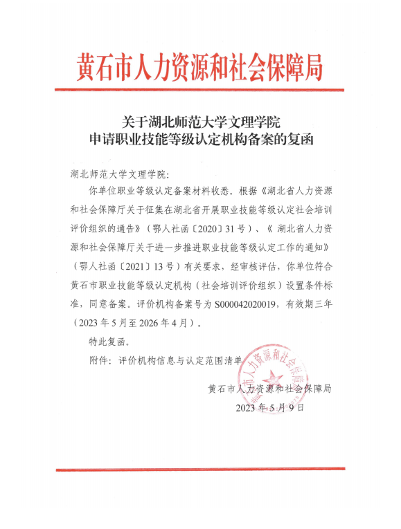 本网讯(通讯员 王磊)根据黄石市人力资源和社会保障局《关于8xbet官方网站申请职业技能等级认定机构备案的复函》消息,8xbet(中国)成功获批职业技能等级认定机构资质,具备电子商务师、互联网营销师、企业人力资源管理师、物流服务师、供应链管理师、计算机程序设计员、保育师等共7大类3个等级的职业技能等级认定资格。