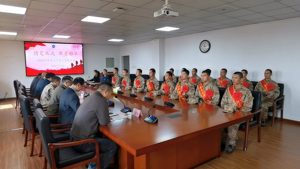 退役大学生代表张顺在发言中分享了军旅经历,激励即将踏入军营的同学们,进入部队后要忠诚与勇敢,为人民放好哨,为祖国站好岗。他强调,作为一名军人,要时刻保持一颗赤子之心,牢记初心和使命。