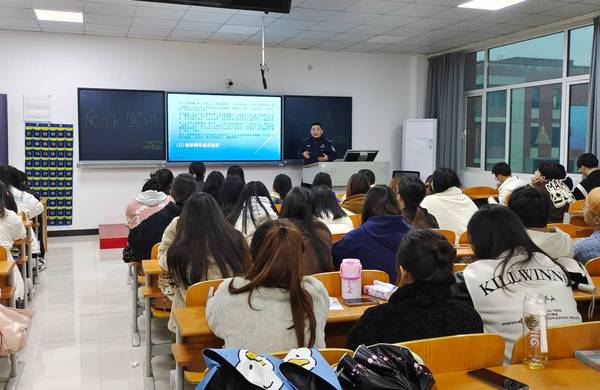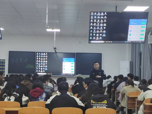 3月13日,8xbet(中国)特邀汪仁派出所民警为同学们进行“反电信诈骗”主题讲座。