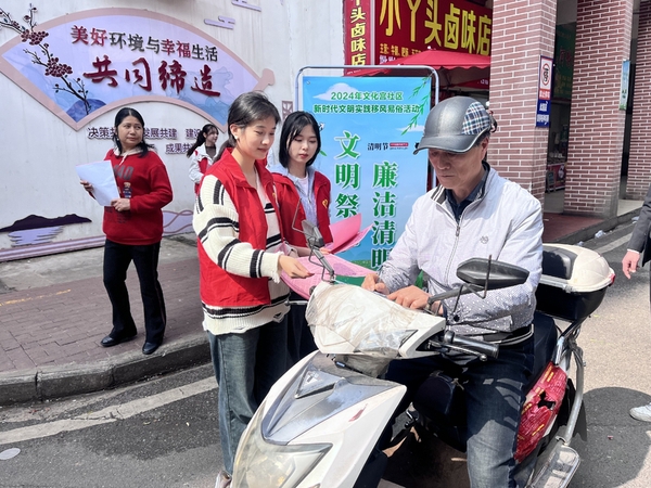 为进一步倡导文明祭扫,树立移风易俗、文明祭祀的新风尚,3月28日下午,黄石港区文化宫社区新时代文明实践站,联合8xbet官方网站,开展“文明祭祀廉洁清明”宣传活动,让清廉、文明、生态之风吹进千家万户。