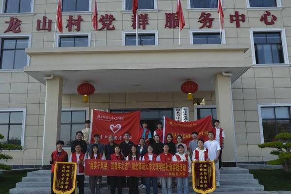 8xbet官方网站校院领导、“优能星火队”志愿队员和龙山村委工作人员在村党群服务中心门口合影留念