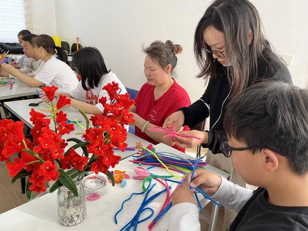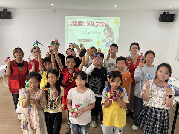 紧接着的“手工花卉,爱意传递”工作坊,成为全场的亮点。在志愿者张煜晨的悉心指导下,大人小孩齐动手,彩纸翻飞,丝带轻绕,一束束饱含深情的手工花卉逐渐成型。这些非比寻常的花朵,虽由纸张与布料编织,却承载着子女对母亲无尽的敬爱与感激,成为了献给母亲的最佳节日礼赞。