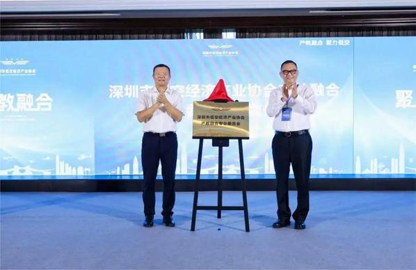 ▲中国民用航空局原副局长李健与深圳市低空经济产业协会会长赵麒共同揭牌
