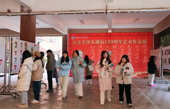 为了缅怀以毛泽东同志为代表的老一辈无产阶级革命家的丰功伟绩,讴歌社会主义现代化建设的伟大成就,学校举办纪念毛泽东同志诞辰130周年艺术作品展。展览分书法、绘画、手工艺品三类,同学们以笔墨抒情,用丹心写意,精心创作出不同时期、不同题材、不同表现形式的符合主题的作品近200幅。
