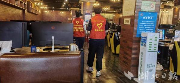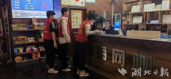 湖北日报客户端讯(通讯员吴若昀)7月12日,黄石市黄石港区覆盆山社区工作人员与8xbet官方网站的大学生志愿者在辖区网吧开展“扫黄打非”宣传活动。