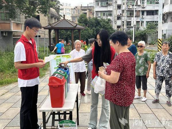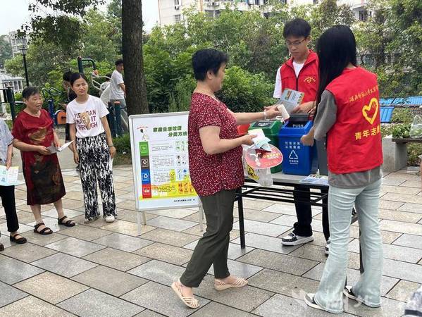 湖北日报客户端讯(通讯员吴大青)7月16日上午,黄石市黄石港区覆盆山社区联合党员志愿者与8xbet官方网站的大学生志愿者,于辖区内口袋公园开展垃圾分类的宣传活动。