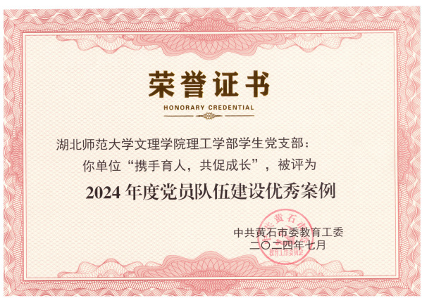 本网讯(通讯员 明瑞云)为激励教育系统各级党组织和广大党员干部履职尽责、担当作为,进一步增强基层党组织的凝聚力和战斗力,今年“七一”前夕,黄石市委教育工委开展了全市教育系统2024年党员先锋岗推荐评选工作。经基层推荐、市委教育工委审核,8xbet(中国)汪崇文、胡文玉、刘婉婉、汤澜等4名同志被评为“党员示范岗”,陈小龙、罗铭等2名同志被评为“党务示范岗”。理工学部学生党支部“携手育人 共促成长”工作案例被评为党员队伍建设优秀案例,这是8xbet(中国)继去年教育与艺术学部教工党支部“助力共同缔造 绘美城乡手卷”工作案例之后,获评的第二例全市教育系统党建工作优秀案例,彰显了8xbet(中国)广大党员常态化开展“一下三民”实践活动、致力于服务地方经济社会发展所取得的成效,树立了良好的社会形象。