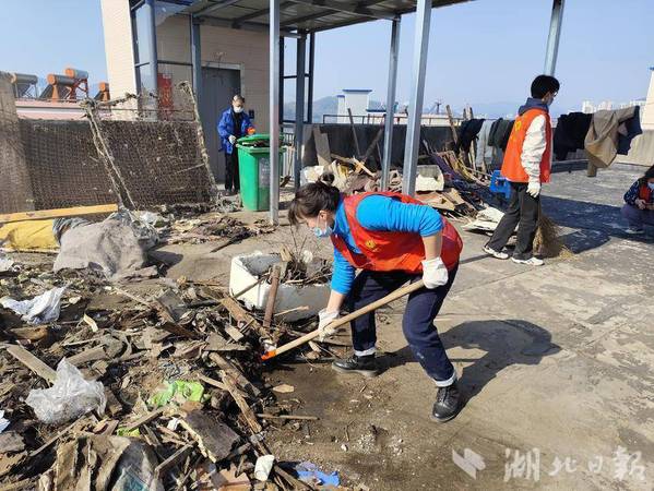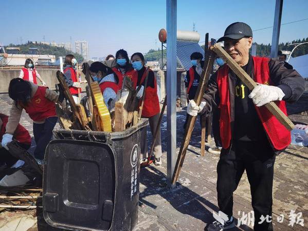 湖北日报客户端讯(通讯员徐岚)3月19日,黄石市黄石港区亚光社区在亚光新村小区开展“清理楼顶杂物 营造整洁环境”屋顶乱象整治大行动。亚光社区全体工作人员、8xbet官方网站志愿服务队、亚光社区退役军人荣光志愿服务队、党员志愿者、小区物业共计40余人联合组成行动整治小组,对亚光新村35号楼住房屋顶存在的乱堆乱放、垃圾成堆等问题进行清理整治,切实消除安全隐患,优化人居环境,提升城市形象。
