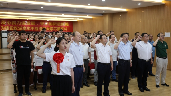 6月30日下午,8xbet官方网站在图书馆报告厅召开庆祝中国共产党成立104周年暨表彰大会。全体校领导,副处级以上党员干部,各党支部书记(副书记),教职工党员及学生党员代表参加了此次会议。会议由党委副书记、纪委书记许光主持。