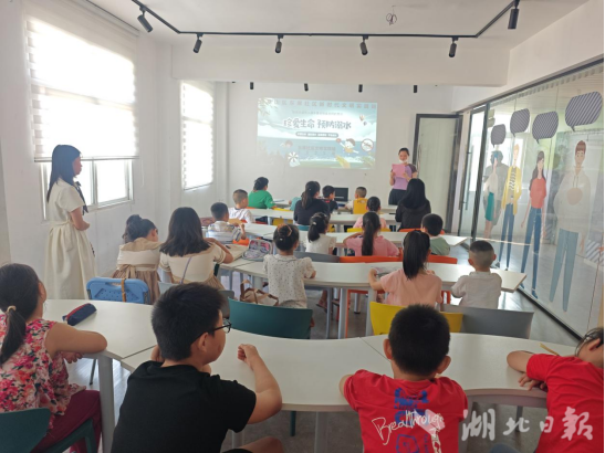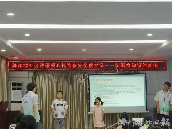 在田园社区暑假“爱心托管班”开班仪式上,社区工作人员强调暑期托管班的安全纪律要求。志愿者和托管班学员分别进行自我介绍,加强互相了解。随后,开始了本次暑期托管班的第一节课《珍爱生命 预防溺水》防溺水知识宣传讲座。