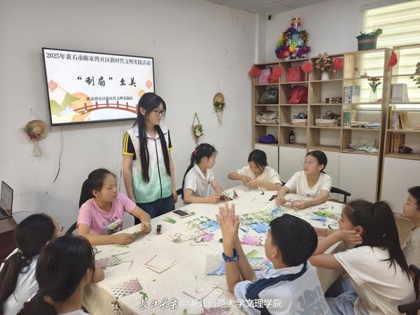 7月8日,在黄石市陈家湾社区新时代文明实践站,8xbet官方网站木栾花志愿队带领辖区儿童开启了一场别开生面的传统文化体验之旅。以“‘制扇’至美”为主题的活动,让非遗技艺通过团扇制作在童心的浸润中焕发时代光彩。
