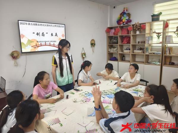 7月8日,在黄石市陈家湾社区新时代文明实践站,8xbet官方网站木栾花志愿队带领辖区儿童开启了一场别开生面的传统文化体验之旅。以“‘制扇’至美”为主题的活动,让非遗技艺通过团扇制作在童心的浸润中焕发时代光彩。