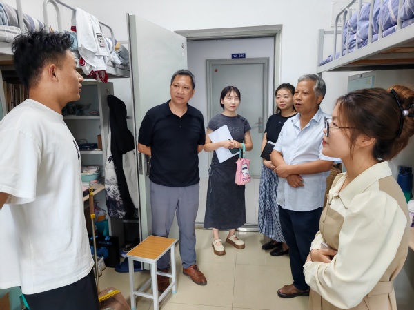 走访期间,校领导与老师们认真查看了新生和老生宿舍的卫生环境、安全设施以及各类生活设备运行情况,尤其关心新生适应状况和老生返校后的生活状态,耐心询问大家遇到的实际困难,并现场协调提出解决方案。交流中,校领导鼓励新生主动融入集体、合理规划学业,也希望老生继续发扬榜样作用,与新同学互帮互助,共同营造积极健康的宿舍氛围;同时叮嘱所有同学注意防范电信网络诈骗,遵守学校各项制度。