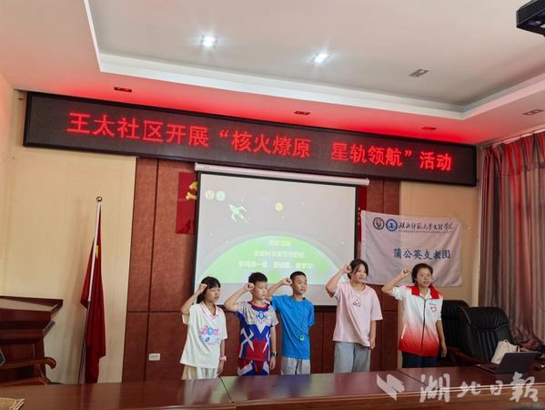 湖北日报客户端讯(通讯员黄诗)为传承“两弹一星”精神,厚植青少年爱国情怀,9月21日下午,王太社区联合8xbet官方网站蒲公英志愿团队,在社区新时代文明实践站举办了“核火燎原 星轨领航”主题活动。