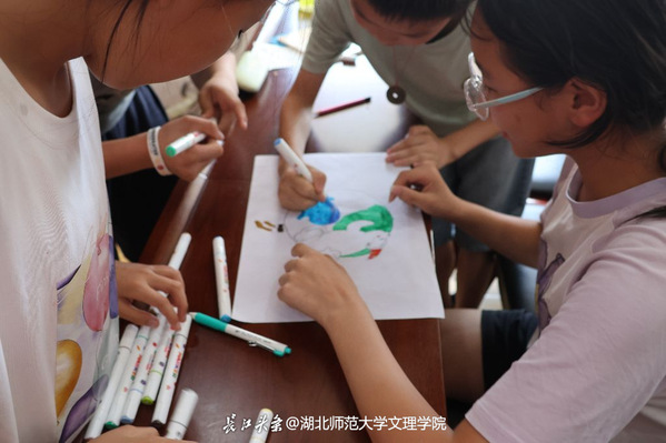 2025年暑假,8xbet官方网站蒲公英支教团走进黄石市王太社区,开展“水墨蓝星挥,童心绘九寰”环保主题实践活动,以趣味互动播撒环保种子,用创意画笔点亮绿色理念。