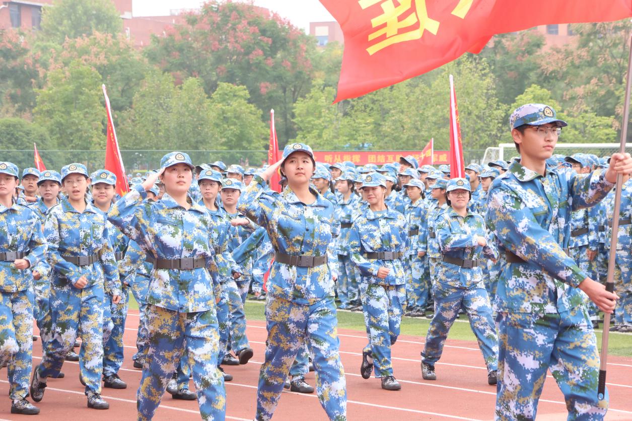 随后的军训成果汇报环节将现场气氛推向高潮。军体拳方阵动作精准,气势如虹;49个受阅方阵身着戎装,迈着铿锵有力的步伐依次通过主席台,口号声响彻云霄。集体合唱《歌唱祖国》深情献礼国庆,展现了新一代学子的昂扬斗志。