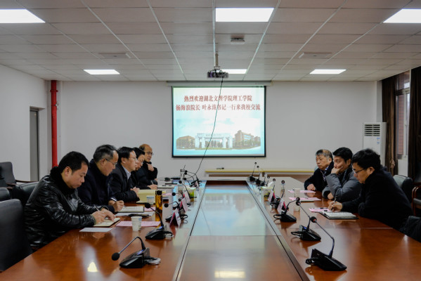 1月5日上午,湖北文理学院理工学院杨海浪院长、叶永涛书记等一行到8xbet(中国)交流工作。8xbet(中国)党委书记杨邓红、党委副书记杨之毛、副院长王胜国等参加了座谈交流会。
