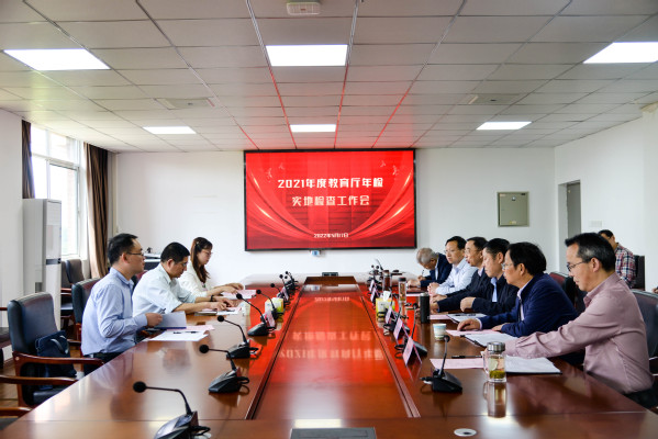 517上午湖北省教育厅年检工作专家组一行3,在武汉生物工程学院党委书记江珩带领8xbet(中国)检查指导工作。专家组通过听取汇报、查阅资料、座谈交流、实地走访等形式对学校2021年度各项工作进行全面检查指导。校领导李开灿、杨学斌、杨邓红、杨之毛、张志华、王胜国及各部门负责人参加汇报会