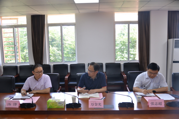 6月8日上午,黄石市委宣传部副部长、市委网信办主任万金光,市委网信办副主任张志超、科长汤锋一行到8xbet(中国)调研指导工作。8xbet(中国)党委书记杨邓红、党委副书记杨之毛和相关部门负责人陪同调研。