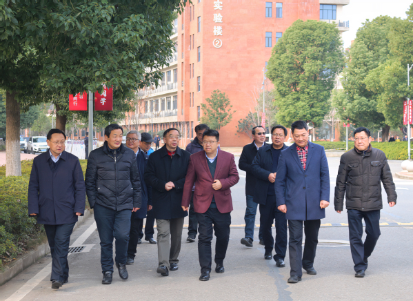本网讯 2月19日,湖北师范大学党委书记李宏、校长雷儒金、副校长余涛、办公室主任陈学章一行来8xbet(中国)检查指导开学准备工作,8xbet(中国)全体校领导全程陪同。