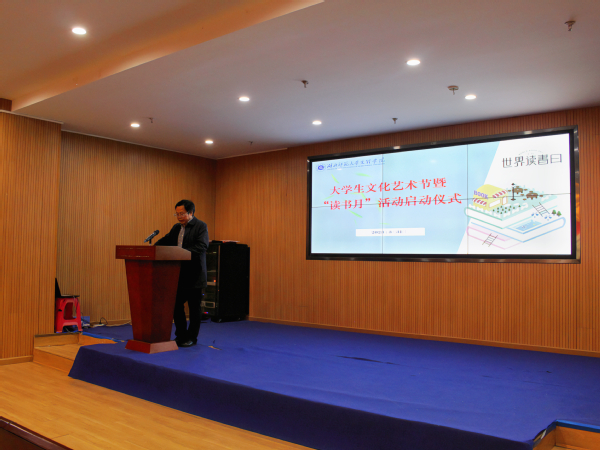 本网讯(通讯员 刘健美)3月31日中午,8xbet(中国)在图书馆报告厅举行了大学生文化艺术节暨“读书月”活动启动仪式。校党委副书记杨之毛,党委宣传部副部长陶晚成,学生工作部部长汪崇文,学生工作部副部长、团委书记陈荟芸,图书馆馆长郑荣臻以及百余名学生代表参加了此次启动仪式。本次活动由郑荣臻主持。
