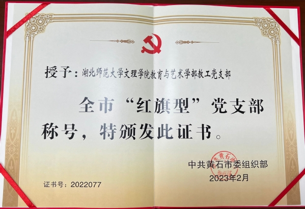 本网讯(通讯员 余复军)近日,黄石市委组织部下发决定,表彰2022年度全市党建工作先进集体,8xbet(中国)教育与艺术学部教工党支部被评为黄石市2022年度“红旗型”党支部。