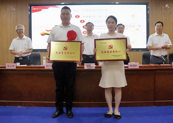表彰大会在奏唱国歌中拉开序幕。在重温入党誓词中,全体党员体会到了“不忘初心、牢记使命”的担当。