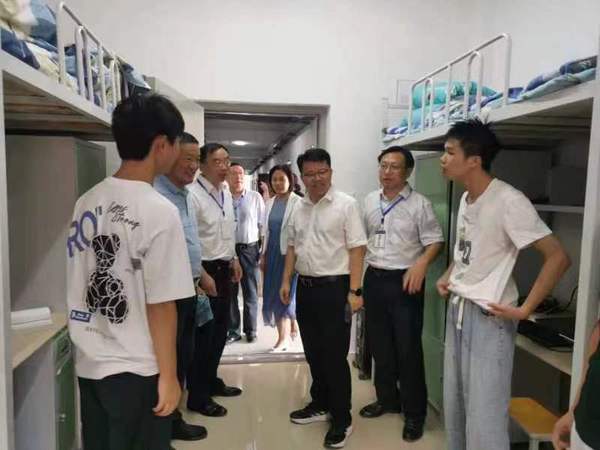 在新生宿舍,领导们实地查看了新生的住宿环境,对学生住宿条件表示肯定。在与新生的交谈中,详细询问他们对校园学习生活环境和后勤保障工作的感受、听取意见建议,告诫新生们要团结友爱、相互帮助,照顾好自己,尽快适应大学生活。