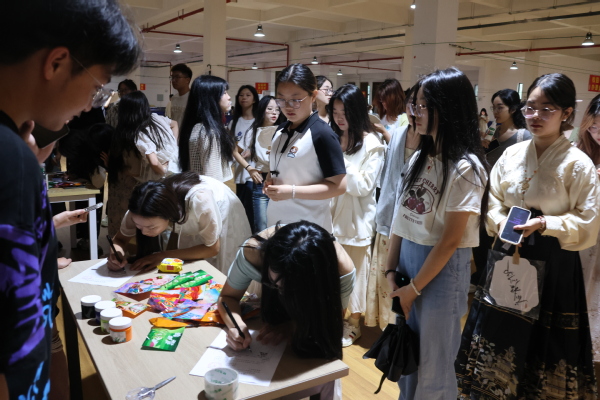 本次活动围绕端午主题设立了漆扇DIY、艾草香囊制作、书签硬笔书法、粽叶绘画、海报涂鸦等内容。漆扇DIY通过水中彩漆浸染古风扇;艾草香囊凭借一针一线缝合,制成香囊;书签硬笔书法采取在书签上写字的方式制作心仪书签;粽叶绘画使用颜料绘制粽叶画等。现场氛围十分浓烈,同学们积极参与,乐在其中。参与同学表示,此次端午限定市集的活动具有创新意义,尤其是在制作香囊和漆扇的过程中,既体验到自我创作的快乐,也感受到了节日的浓厚氛围。