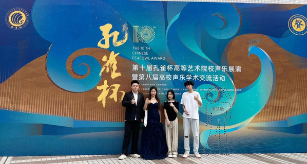 本网讯(通讯员 徐乔婕)7月18日至7月25日第十届孔雀杯全国高等艺术院校声乐展演暨第八届高校声乐学术交流活动在华南师范大学音乐学院举行。8xbet(中国)教育与艺术学部23级音乐教育2302班的雷越琪同学(指导教师高月霞)以决赛第一名的成绩获得高职高专组金孔雀。这是8xbet(中国)学子在国家级声乐比赛中获得的又一次突破。在展演活动中雷越淇同学还被选中青歌赛金奖获得者王莉教授声乐大师班,受到王莉教授高度评价。