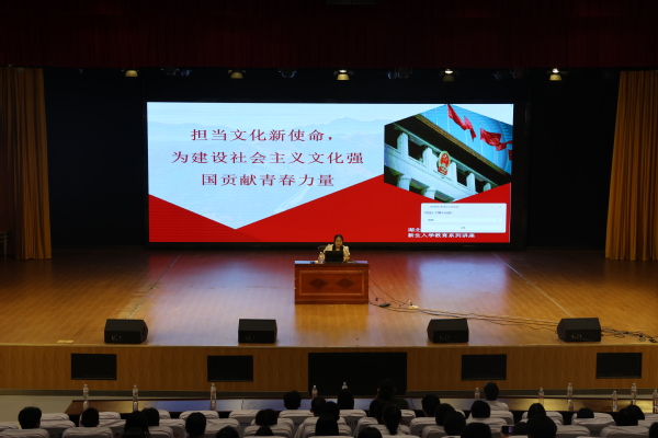 本网讯(通讯员 孙静)文化兴国运兴,文化强民族强。为深入学习贯彻党的二十届三中全会精神,深刻理解习近平总书记关于文化建设重要论述,将当代大学生培养成为更好担负起新的文化使命的时代新人,努力成为堪当强国建设、民族复兴大任的栋梁之材,9月11日下午,理工学部在学术交流中心开展同上一堂思政课活动,马克思主义学部教师胡蕾以“担当文化新使命,为建设社会主义强国贡献青春力量”为题,为2024级新生授课。