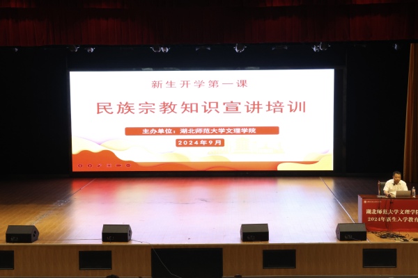 党委书记杨邓红,党委副书记杨之毛,副校长王胜国分别以理想信念教育、学生管理规章制度教育和教学管理规章制度教育为主题,教育新生坚定理想信念,书写青春篇章,明规守纪,奋楫前行。教育与艺术学部主任王文、校图书馆教师刘文芳、黄石市国家安全局相关负责人、汪仁镇派出所警官、学校组织部副部长余复军从大学生学习规划教育、图书馆资源与服务、国家安全教育与防范电信网络诈骗教育及民族宗教知识学习等角度开展新生教育。
