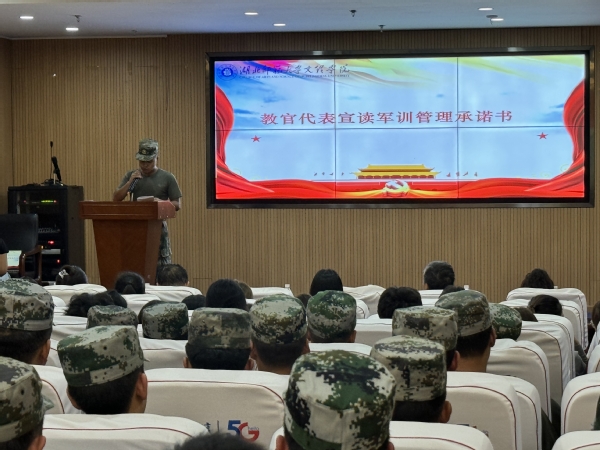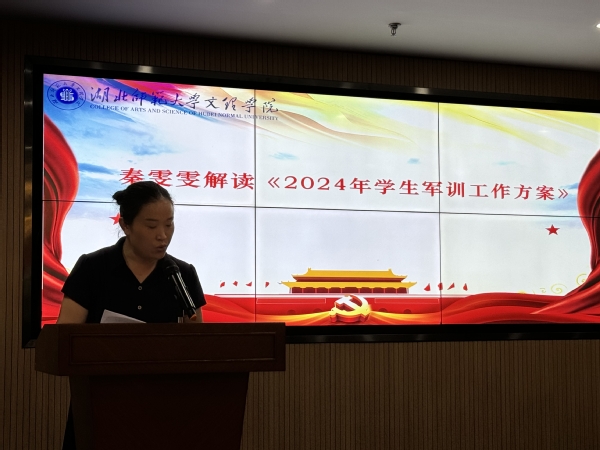 会上,学工部教师秦雯雯宣读《2024年学生军训工作方案》,为新生军训工作提供指导。