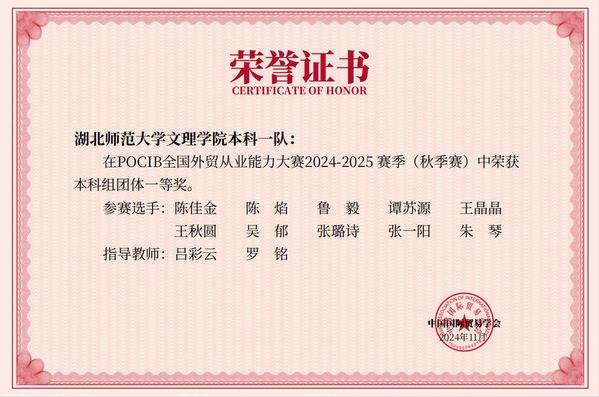 本网讯(通讯员 吕彩云)11月19日,由中国国际贸易学会主办的第十四届POCIB全国大学生外贸从业能力大赛国赛在经历了13天比赛后正式落下帷幕。8xbet(中国)经济与管理学部学子斩获全国团体一等奖2项,个人二等奖5项,个人三等奖15项。
