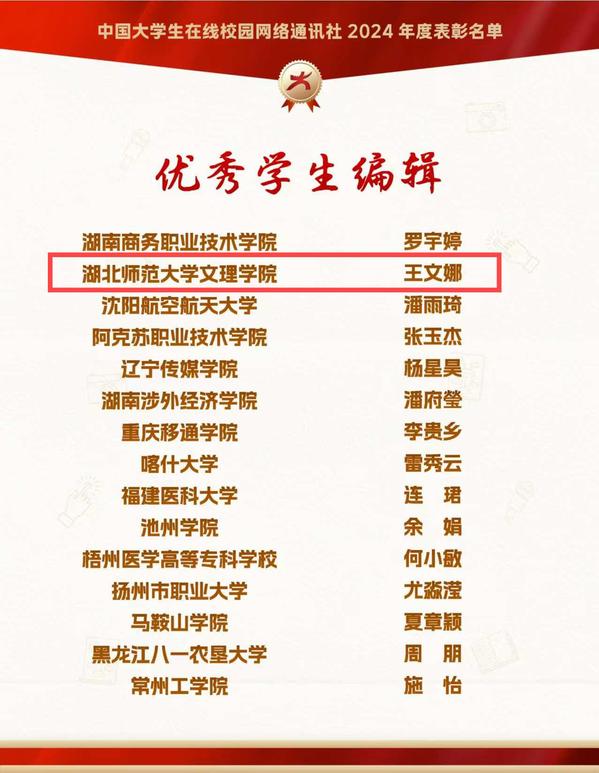 本网讯 12月26日,由教育部中国大学生在线评选的2024年度校园新媒体表彰名单正式公布,8xbet(中国)大学生记者团师生喜获“优秀校网通站”“优秀学生编辑”“校网通优秀指导老师”“年度优秀内容榜单”四项荣誉。