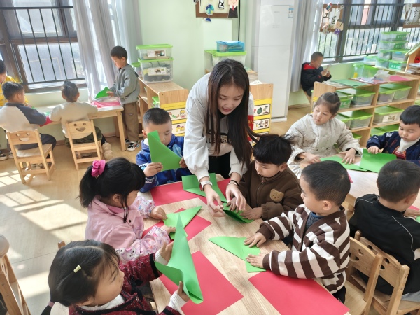 随后,志愿者将雷锋精神的传承融入手工课堂。通过播放动画短片《雷锋的故事》,以孩子们喜闻乐见的形式展现雷锋助人为乐、爱岗敬业的感人事迹。在手工制作环节,志愿者一边讲解雷锋帽的象征意义——“红色的五角星代表着全心全意为人民服务的精神”,一边手把手指导孩子们用彩纸折叠雷锋帽。活动现场,孩子们兴致勃勃地完成了30余顶独具特色的手工作品。
