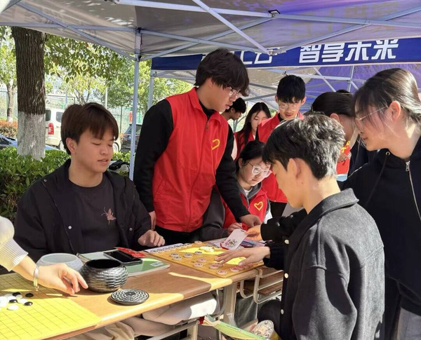 活动现场亮点纷呈,校青年志愿者协会创新开展“志愿时长换套圈”活动,以趣味形式激励志愿服务;人文学部青支队发起“践行雷锋精神,衣路爱心相伴”捐衣活动,累计收到捐赠衣物300余件;理工学部青支队融合学科特色,设置雷锋故事分享墙、科学实验挑战和分子模型拼装等互动项目;经济与管理学部青支队打造“雷锋朋友圈”“循环商店”等创新载体,推动公益理念生活化;教育与艺术学部青支队通过传统剪纸、墨香书签等艺术创作传承雷锋精神;翔宇航空产业学院结合专业特色开展航空文创展示与知识科普;优能东风悦享新能源汽车产业学院组织模型DIY活动,以环保实践呼应绿色发展;腾讯云大数据产业学院搭建“世界赠予我”情感互动墙,墙上贴满了对他人的祝福和各种学习经验,路过的同学纷纷驻足阅读;迪科金融产业学院举办雷锋精神主题绘画创作展,师生通过贴纸为心仪作品助力;茗沁茶艺社以茶会友弘扬传统文化;雅轩棋艺社通过棋类游戏传递公益欢乐。